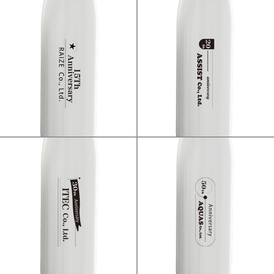 ご発注のアイテムに個人の名前や連番など、個体ごとに異なるテキストをレーザー彫刻するサービスです。こうした個別に異なる内容は、企業ロゴやスローガンと併せて名入れ彫刻がすることができます。