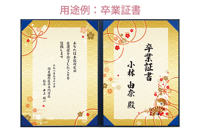 証書(賞状)を差し込むコーナーも証書が映える紺色の布地を使用し、気品がある仕様となっています。