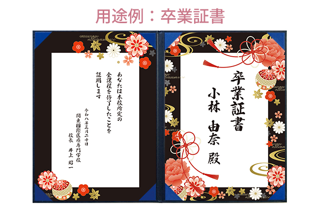 証書(賞状)を差し込むコーナーも証書が映える紺色の布地を使用し、気品がある仕様となっています。