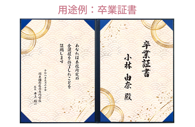 証書(賞状)を差し込むコーナーも証書が映える紺色の布地を使用し、気品がある仕様となっています。