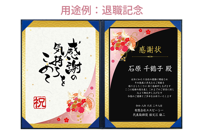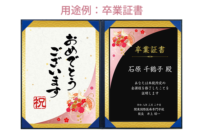 | サイズ | 本体:A4サイズ証書(210mm×297mm)×2、パッケージサイズ:450mm×310mm |
