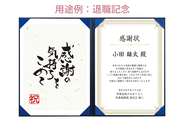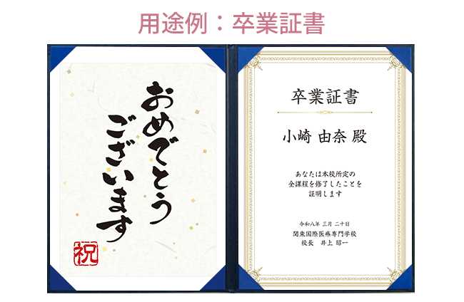 | サイズ | 本体:A4サイズ証書(210mm×297mm)×2、パッケージサイズ:450mm×310mm |
