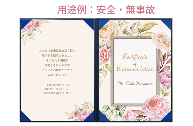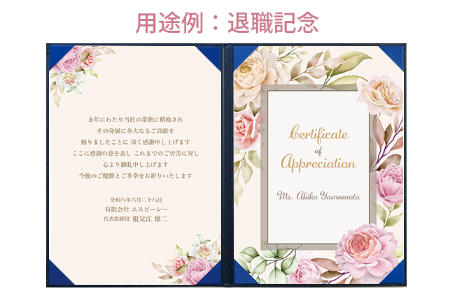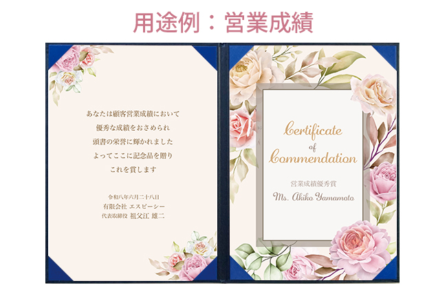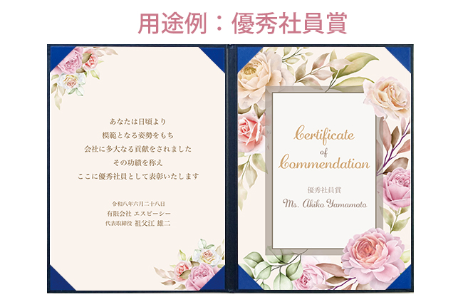 | 商品名 | 飾れる表彰状(賞状) 【大人かわいい -ピンクローズ- 】 |