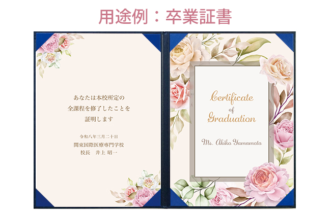 証書(賞状)を差し込むコーナーも証書が映える紺色の布地を使用し、気品がある仕様となっています。