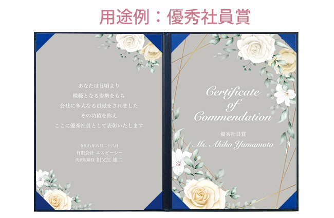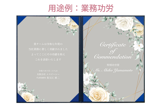 | 商品名 | 飾れる表彰状(賞状) 【大人かわいい -ホワイトローズ- 】 |