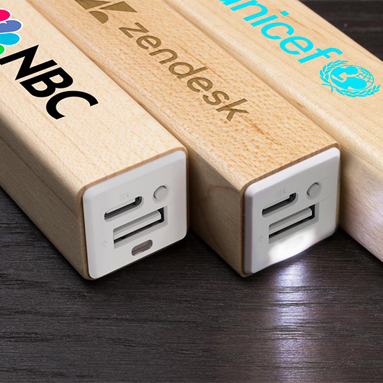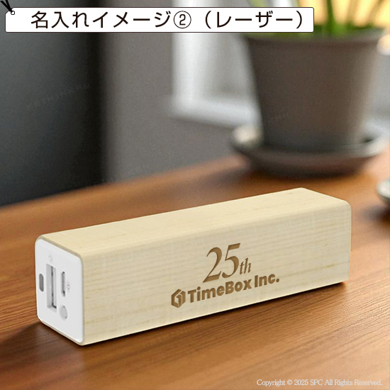 レーザ彫刻では、集約されたエネルギーを用い、モバイルバッテリーに跡をつけます。縁がくっきりとしているロゴには、この方法が適しています。