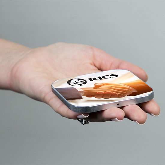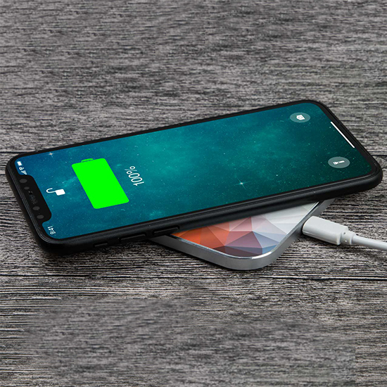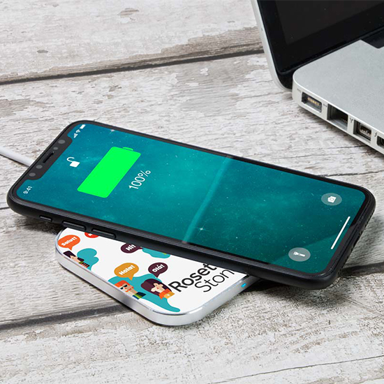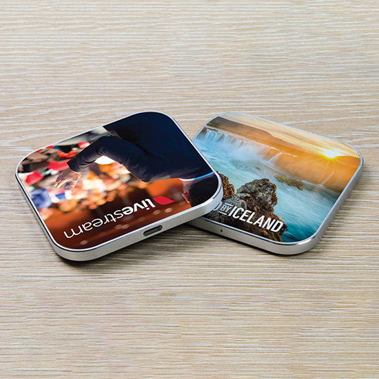 印刷されたロゴは、透明なポリマー樹脂、またはラミネート加工で保護されています。こうして、カスタマイズされたワイヤレス充電器は、耐久性がある、高品質のコーポレートギフトになります。 グラデーションとシェーディングのどちらをロゴに使用したい場合にも、問題ありません。当社にはクリエイティブで技術知識を持つ専門家がおりますので、どちらも可能です。