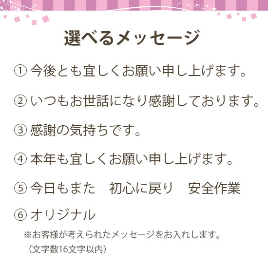 8.安全大会(ひまわり)/6.オリジナルメッセージ(16文字以内) 定価: 220円(税込) 価格: 140円(税込 154円) 30%OFF | あり |