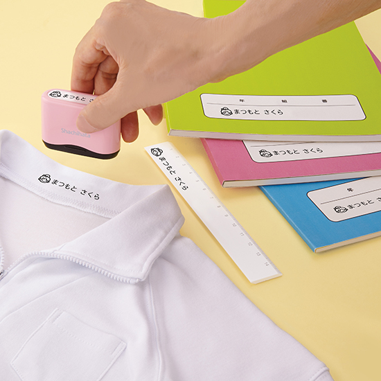 油性インキだから文房具や手提げ袋・体操服など自分の「もちもの」に、手軽にポンポンときれいにスタンプできます。