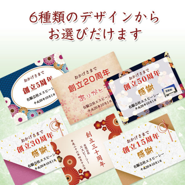 「創立○○周年」と「社名(店名)」「日付」を印刷いたします!