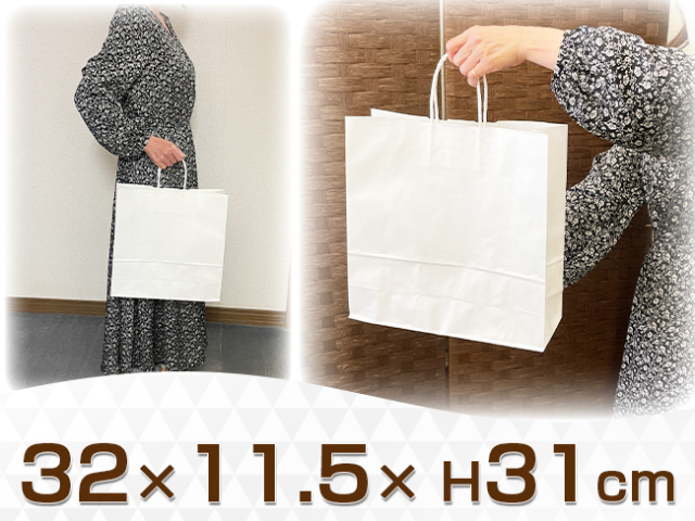 • 手提げ紙袋 白無地 3才 【32×11.5×H31cm】