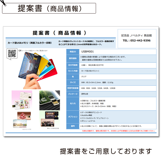 | 商品名 | カード型USBメモリ(両面フルカラー印刷) |