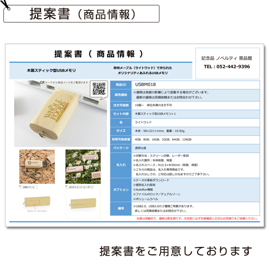 | 商品名 | 木製スティック型USBメモリ |